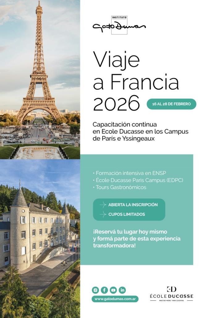 El Viaje Académico a Francia 2026 es una propuesta internacional de formación gastronómica que reúne capacitación avanzada, experiencias culturales y un contacto directo con la tradición y la innovación francesa. Diseñado para estudiantes y profesionales que buscan profundizar sus conocimientos, el programa combina espacios de práctica en instituciones de referencia mundial con actividades complementarias que enriquecen la mirada sobre la gastronomía global.